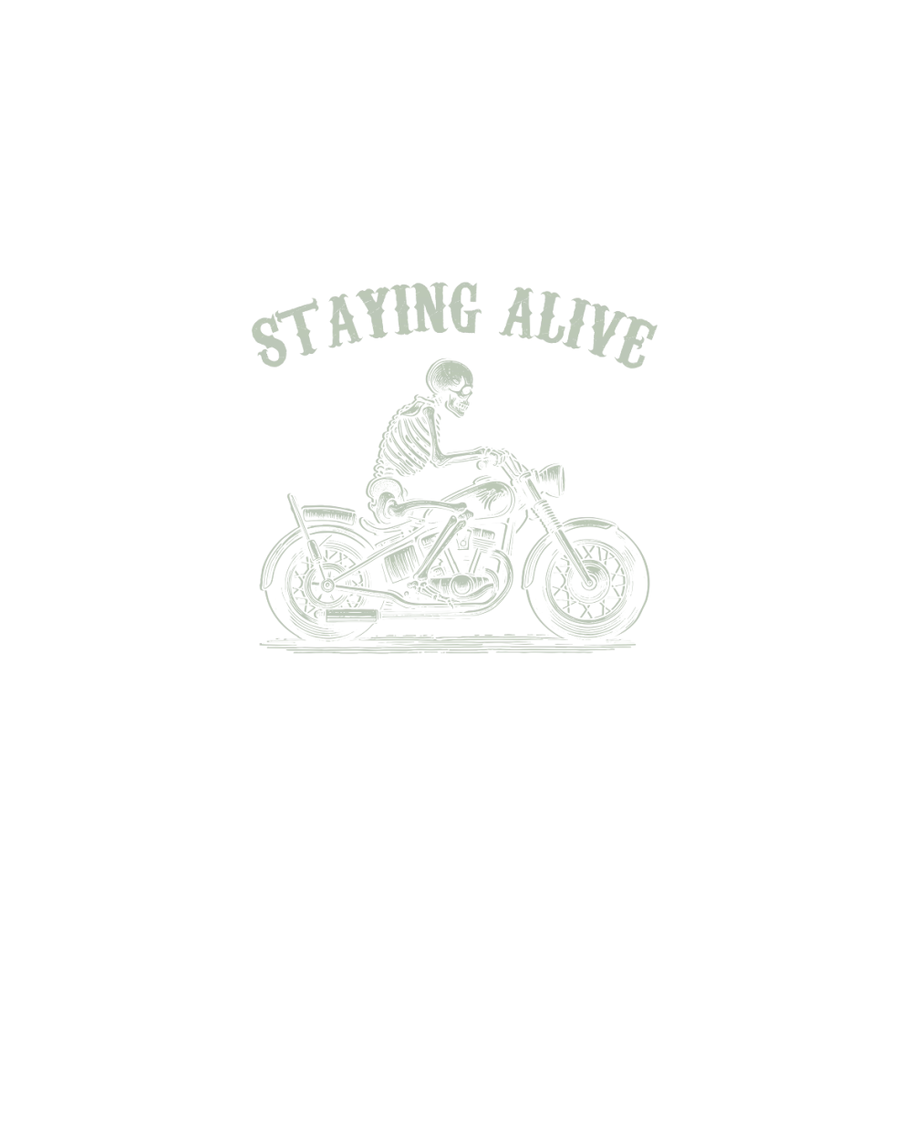 Staying Alive Skeleton riding Motorcycle D Retro Green