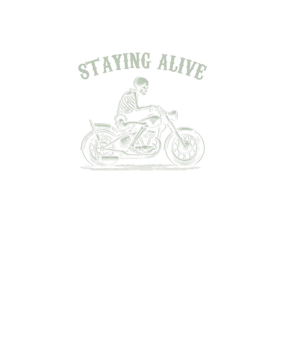 Staying Alive Skeleton riding Motorcycle D Retro Green