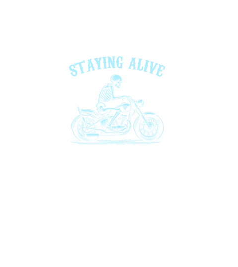 Staying Alive Skeleton riding Motorcycle D Sky