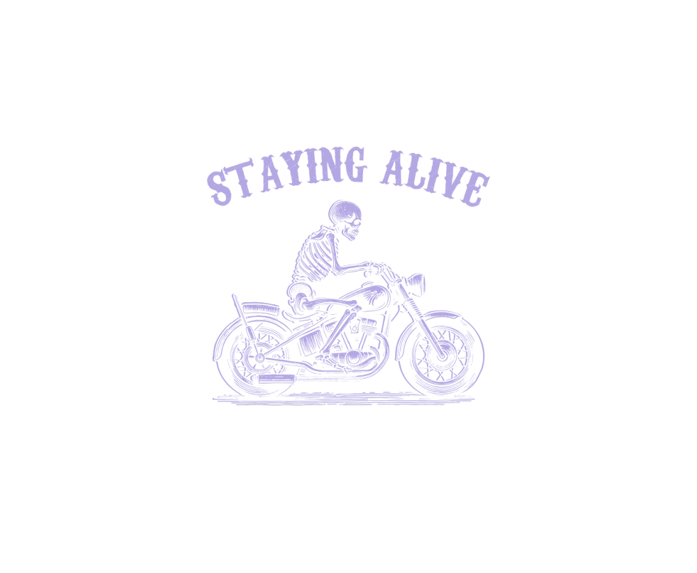 Staying Alive Skeleton riding Motorcycle D Violet