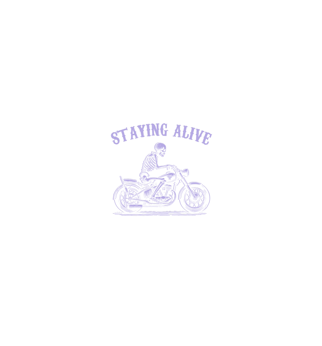 Staying Alive Skeleton riding Motorcycle D Violet