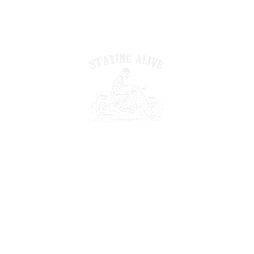 Staying Alive Skeleton riding Motorcycle D White