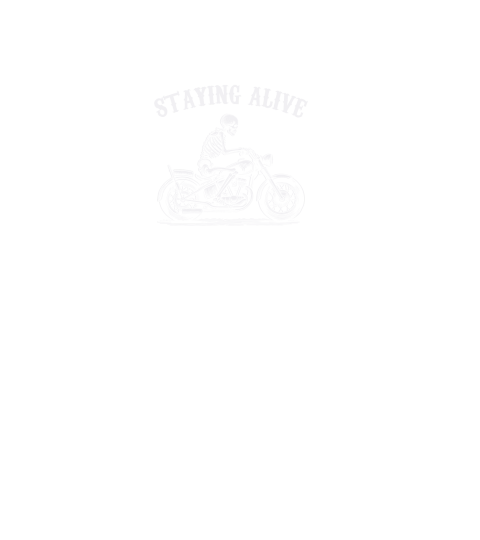 Staying Alive Skeleton riding Motorcycle D White