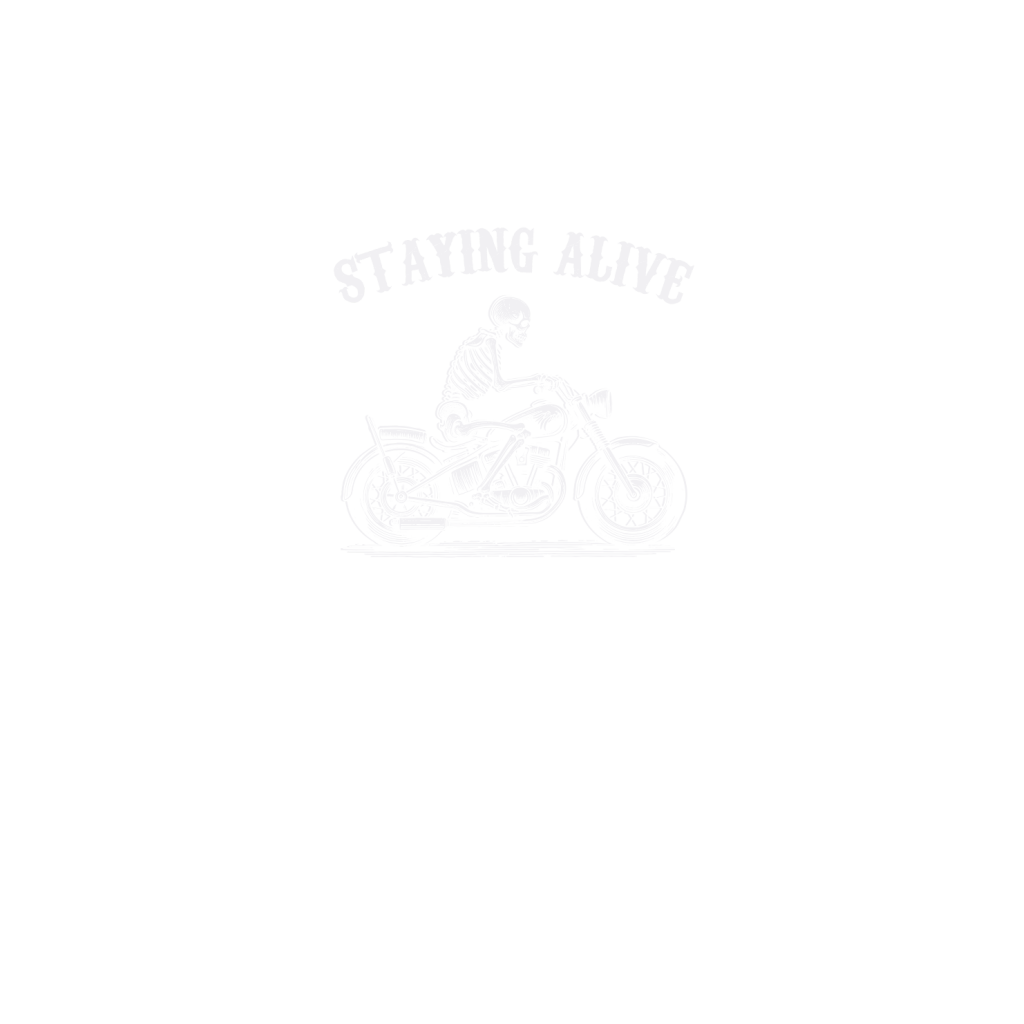 Staying Alive Skeleton riding Motorcycle D White