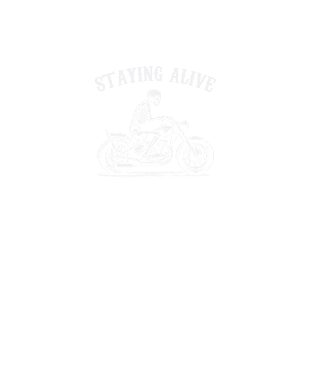 Staying Alive Skeleton riding Motorcycle D White