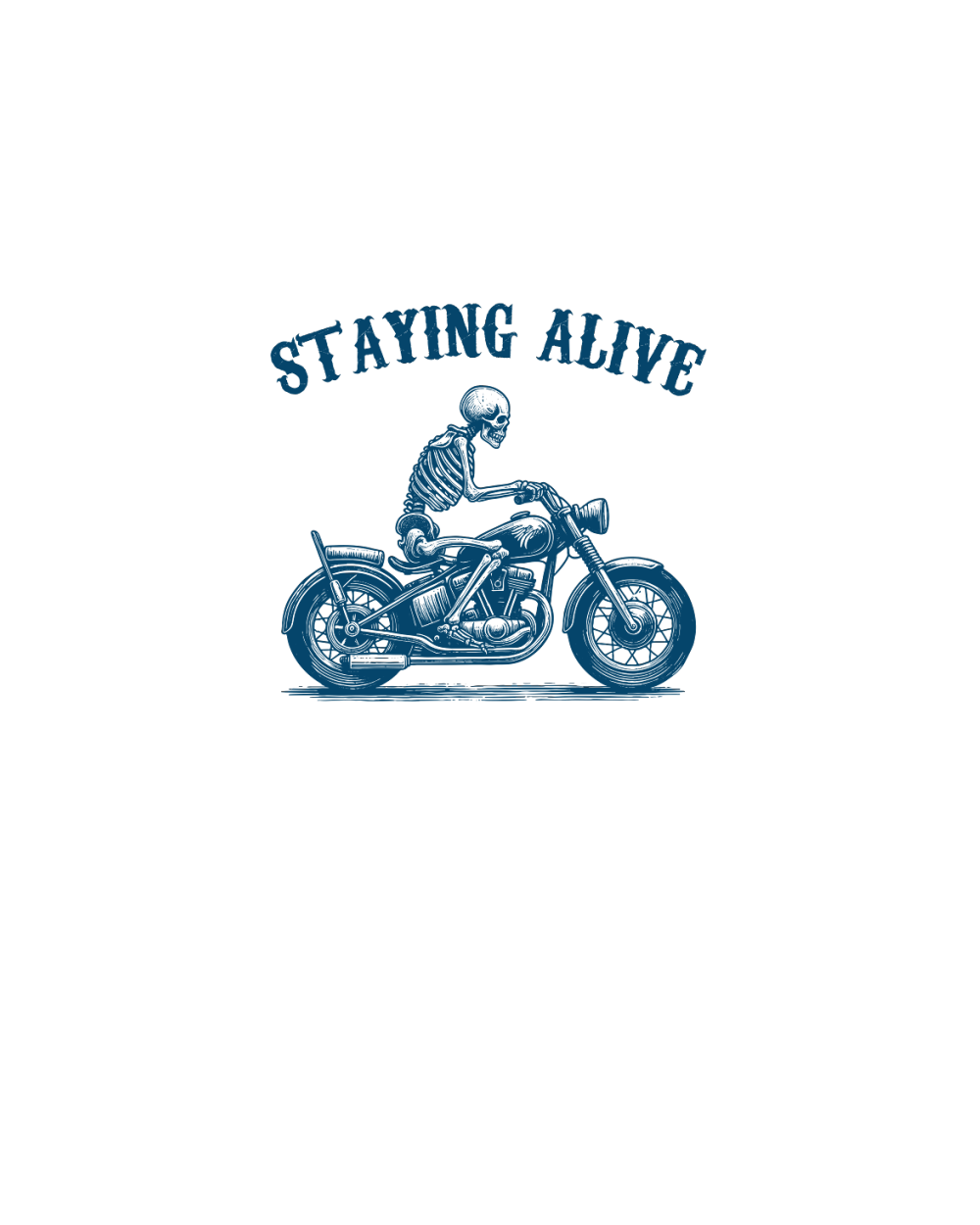 Staying Alive Skeleton riding Motorcycle L V2 Blue