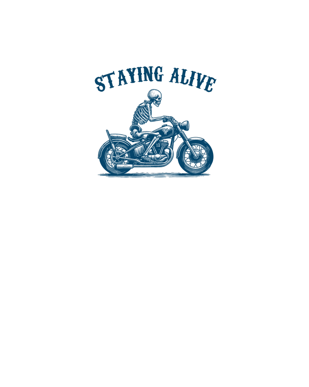 Staying Alive Skeleton riding Motorcycle L V2 Blue