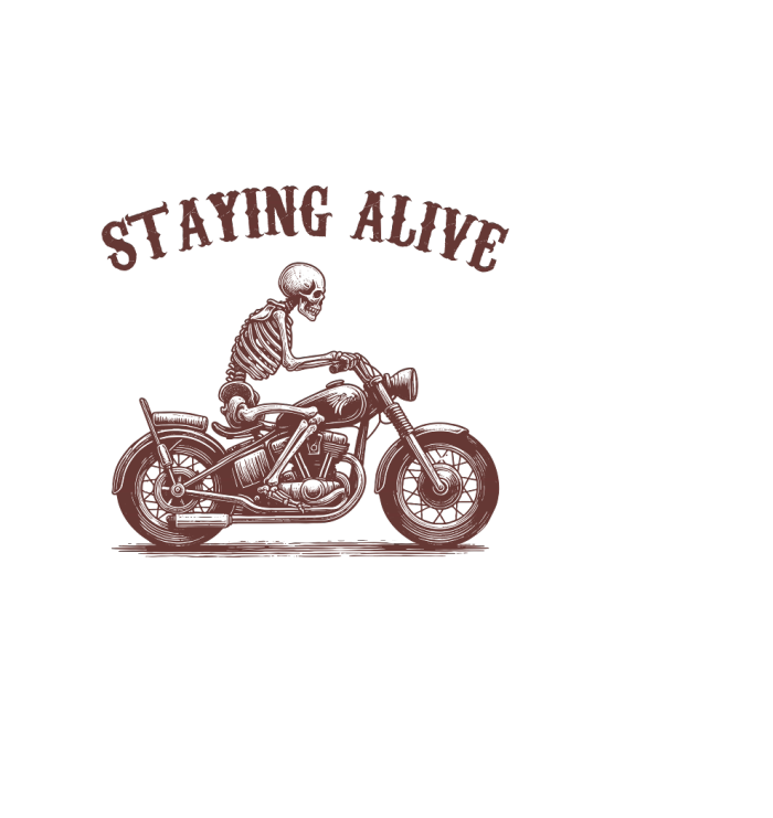 Staying Alive Skeleton riding Motorcycle L V2 Brown