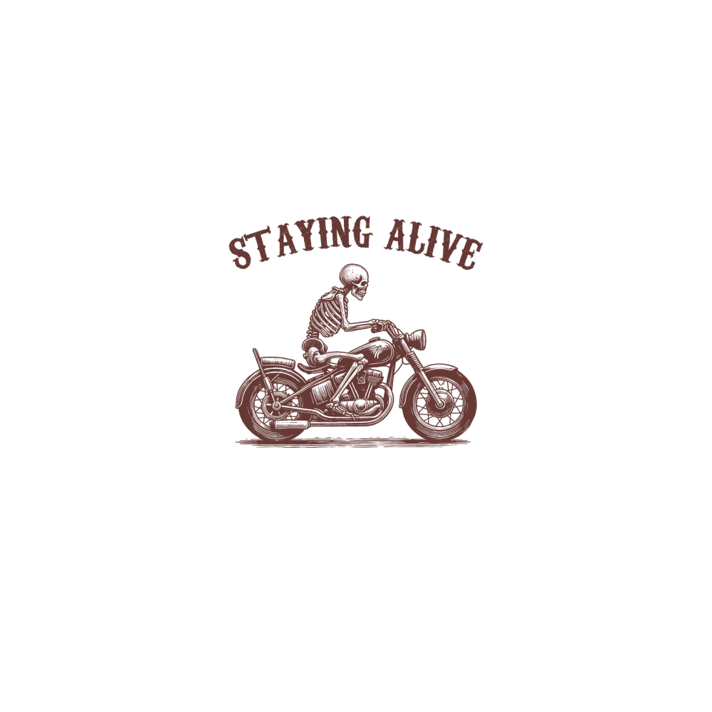 Staying Alive Skeleton riding Motorcycle L V2 Brown