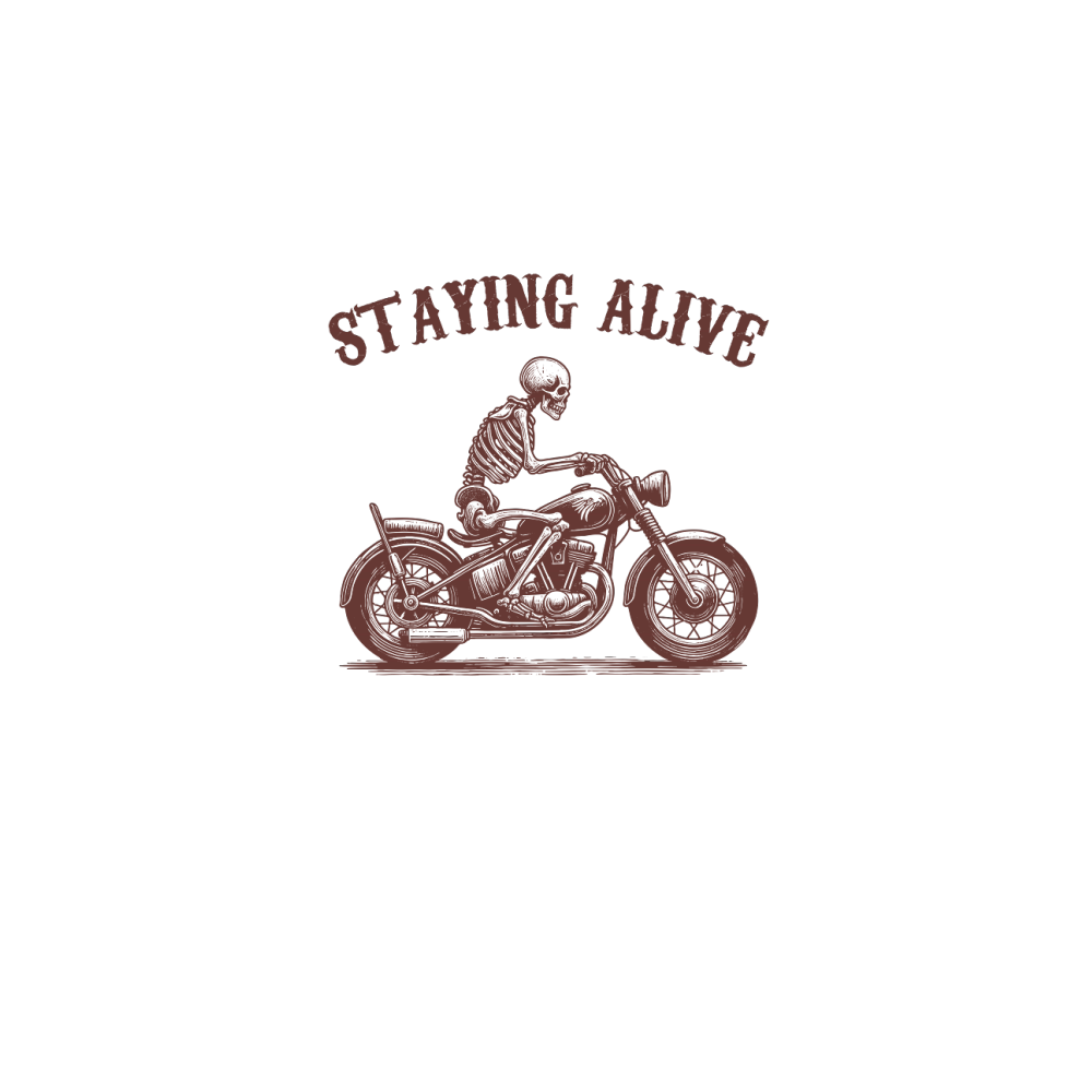 Staying Alive Skeleton riding Motorcycle L V2 Brown