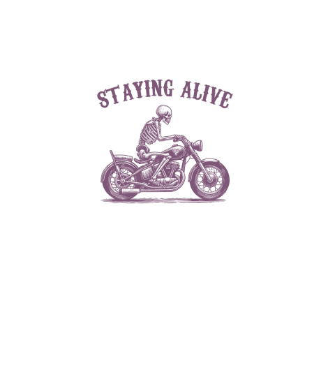 Staying Alive Skeleton riding Motorcycle L V2 Purple
