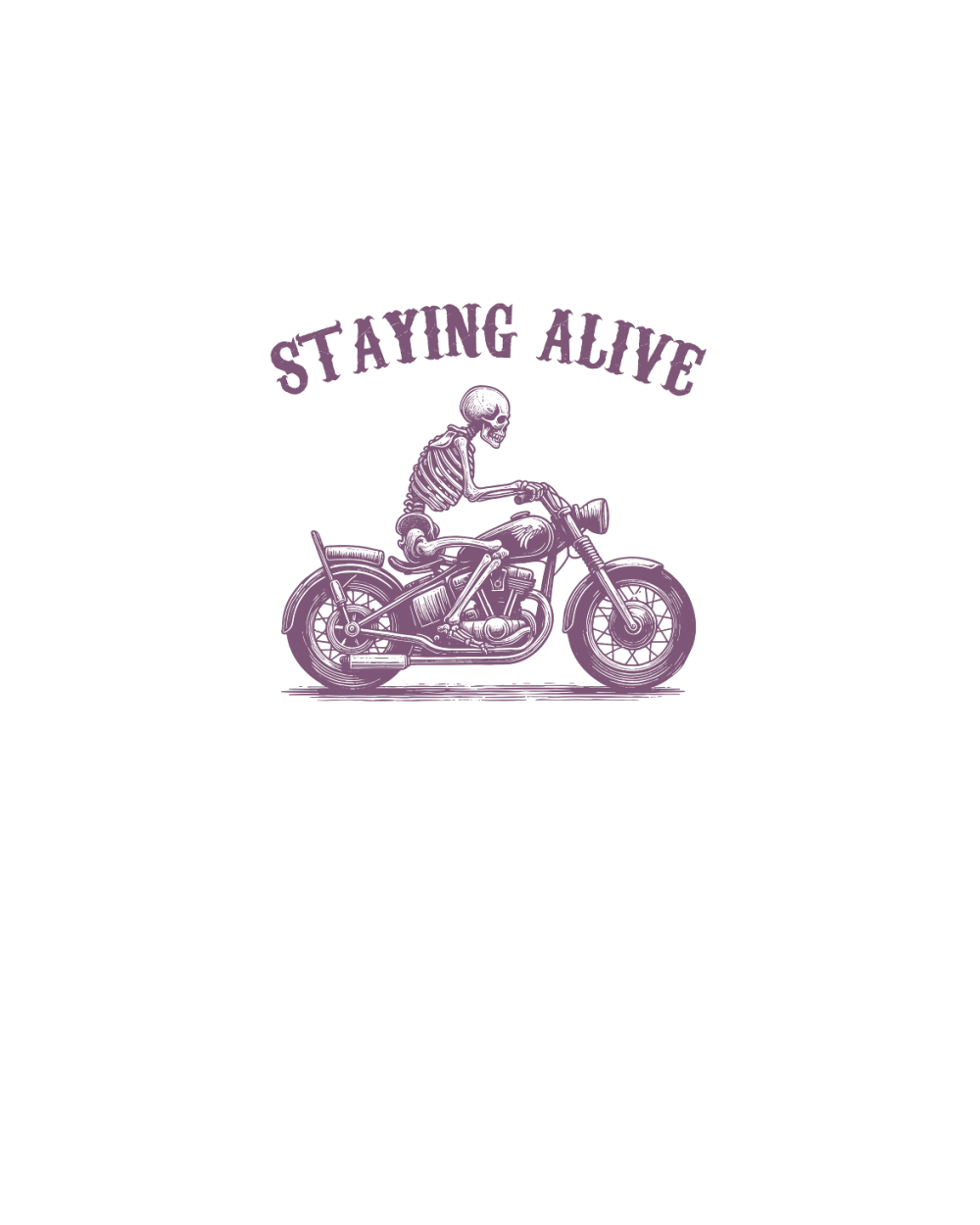 Staying Alive Skeleton riding Motorcycle L V2 Purple