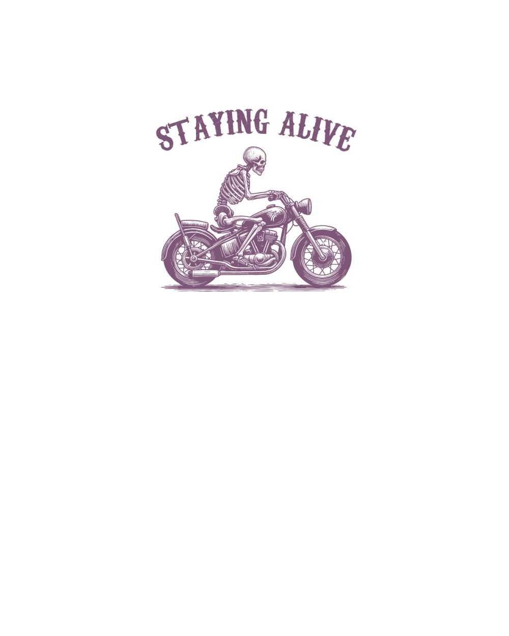 Staying Alive Skeleton riding Motorcycle L V2 Purple