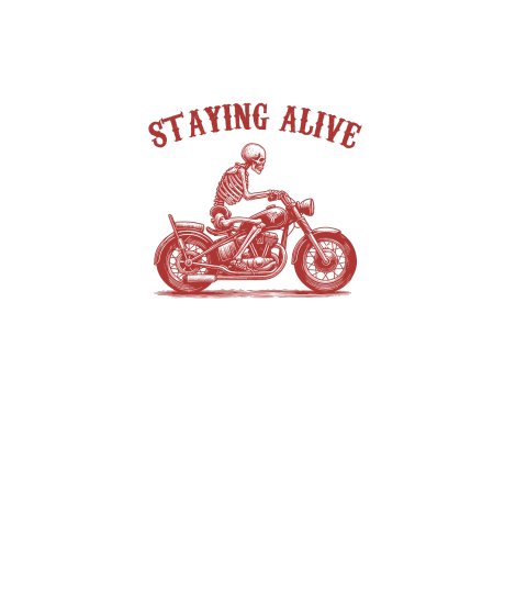 Staying Alive Skeleton riding Motorcycle L V2 Red
