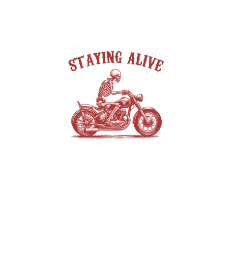 Staying Alive Skeleton riding Motorcycle L V2 Red