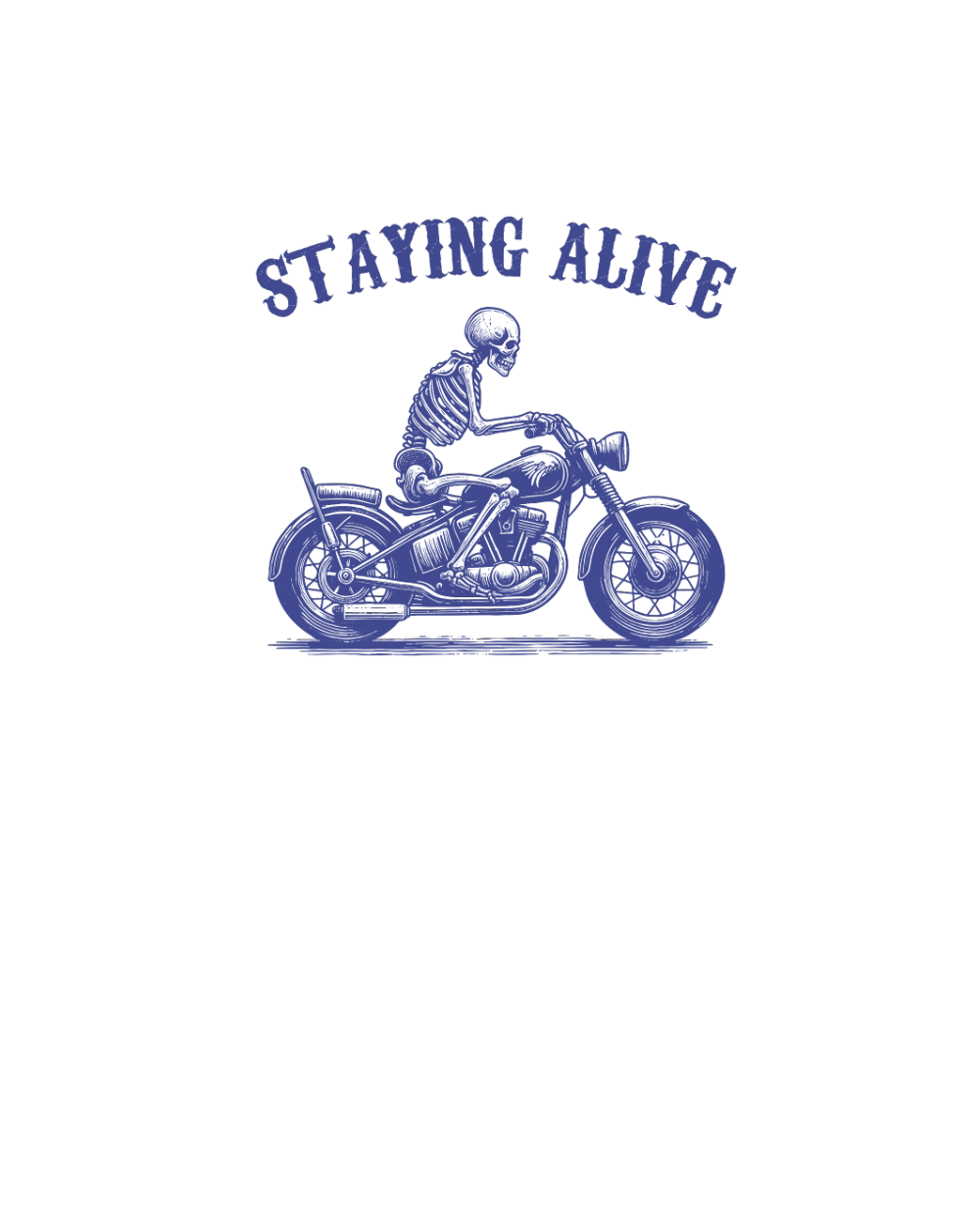 Staying Alive Skeleton riding Motorcycle L V2 vBlue
