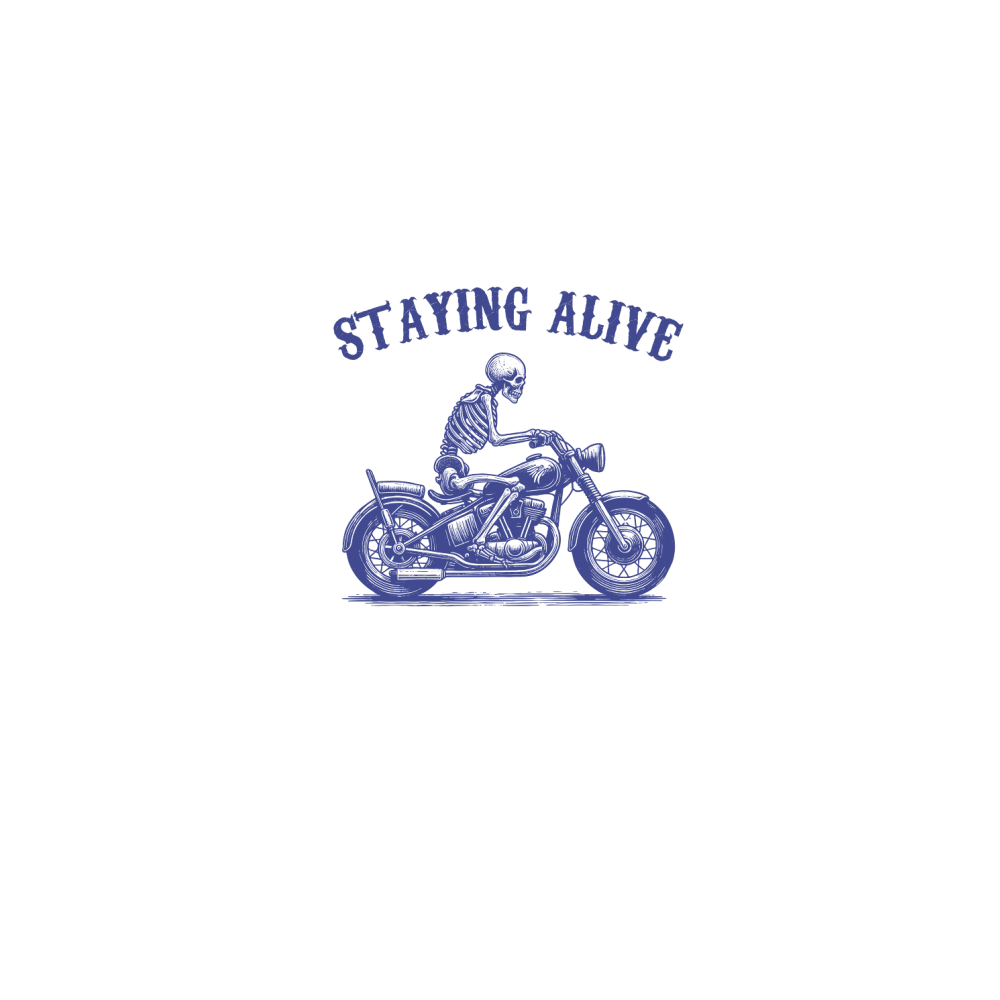 Staying Alive Skeleton riding Motorcycle L V2 vBlue