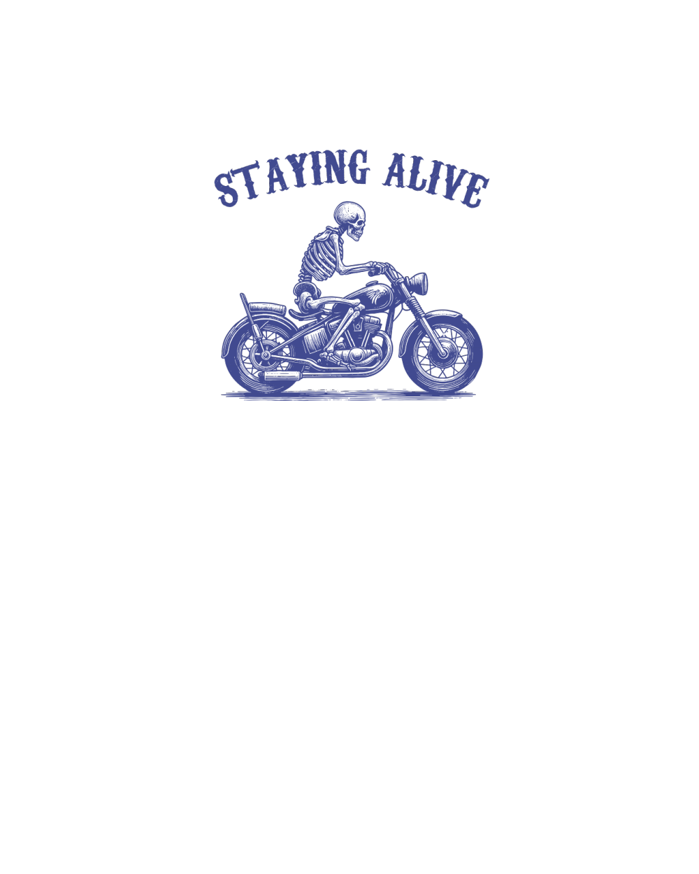 Staying Alive Skeleton riding Motorcycle L V2 vBlue
