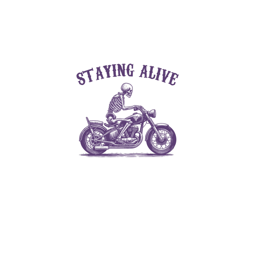 Staying Alive Skeleton riding Motorcycle L V2 Violet