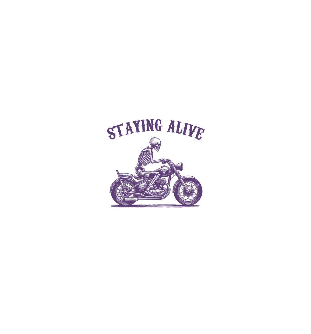 Staying Alive Skeleton riding Motorcycle L V2 Violet