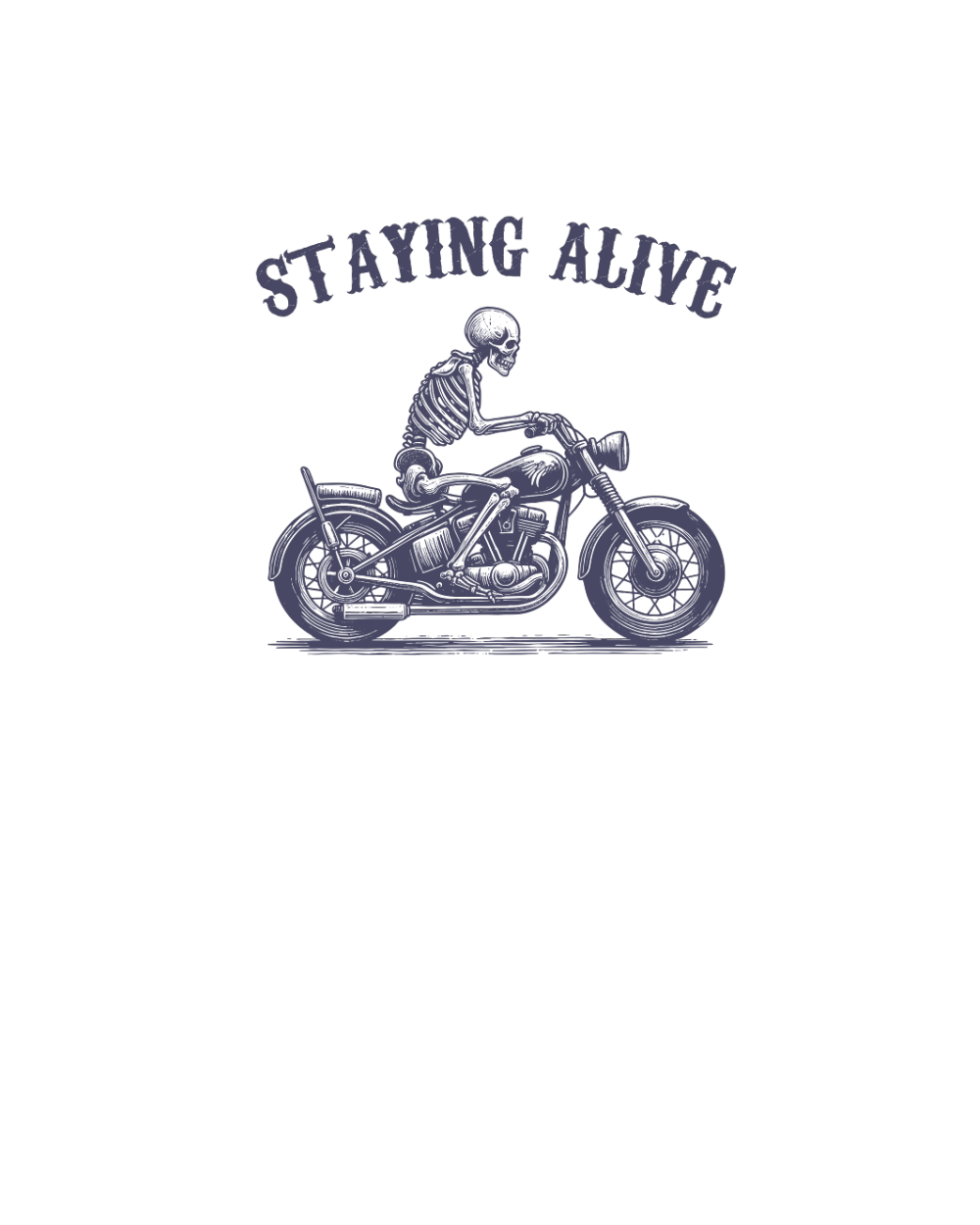 Shop Staying Alive Skeleton riding Motorcycle L V2 vViolet Organic Unisex T-shirt custom made just for you. Available on many styles, sizes, and colors.