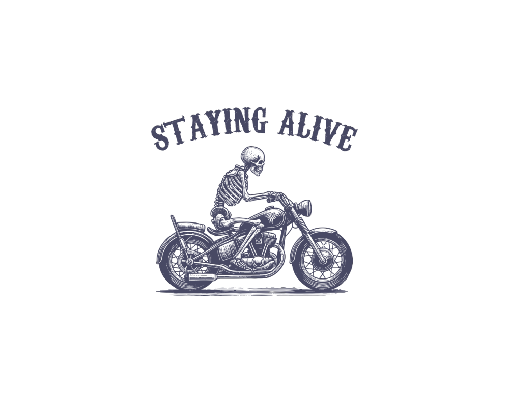 Staying Alive Skeleton riding Motorcycle L V2 vViolet