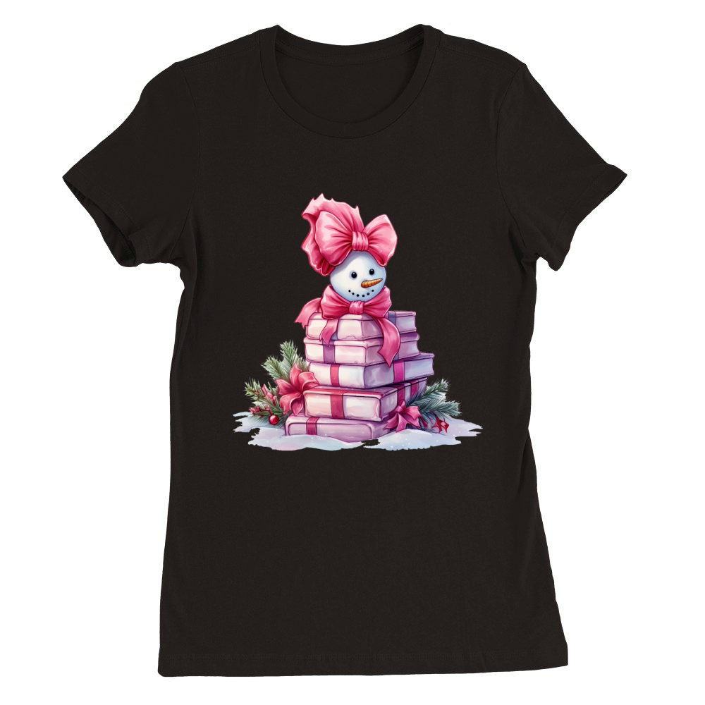 Shop Christmas Pink Snowman Books Watercolor Premium Womens Crewneck T-shirt custom made just for you. Available on many styles, sizes, and colors.