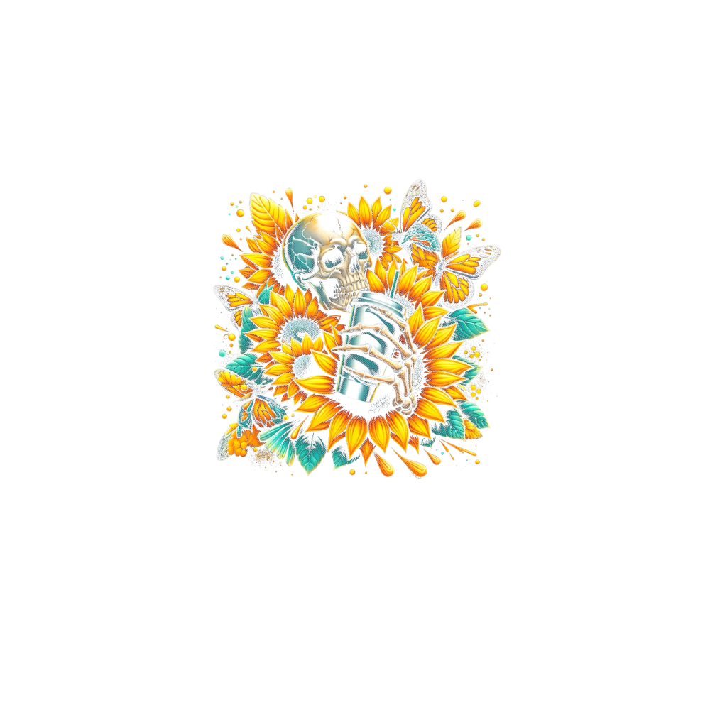 Sunflower Skull with Butterflies