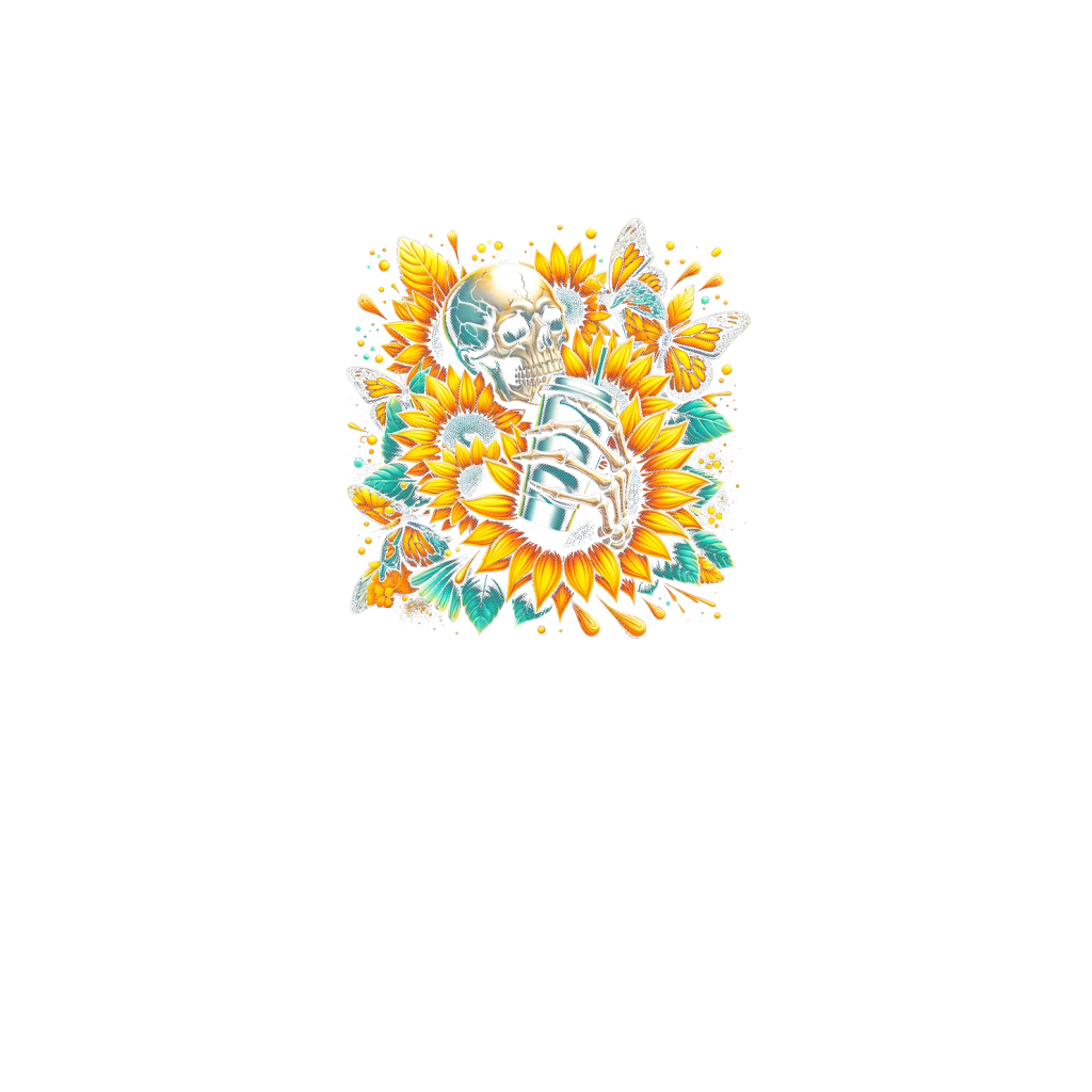 Sunflower Skull with Butterflies