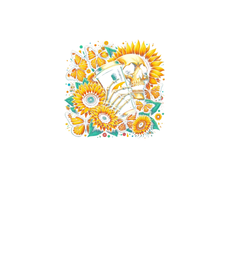 Sunflower Skull with Coffee Cup