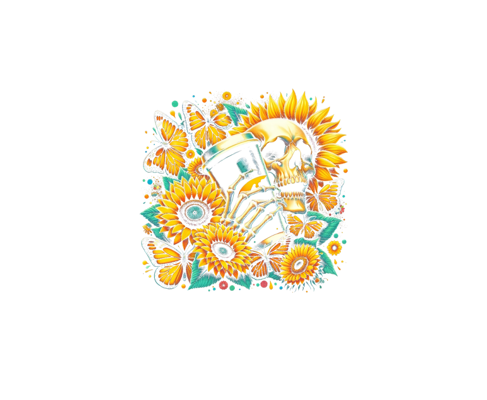 Sunflower Skull with Coffee Cup