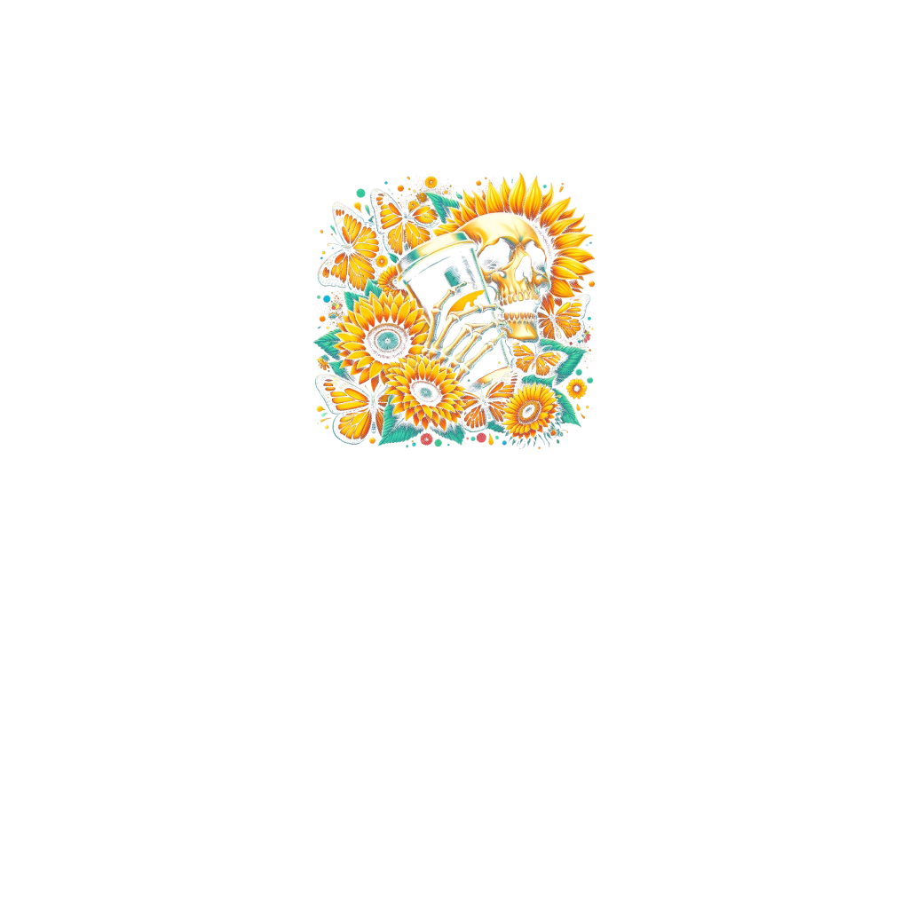 Sunflower Skull with Coffee Cup