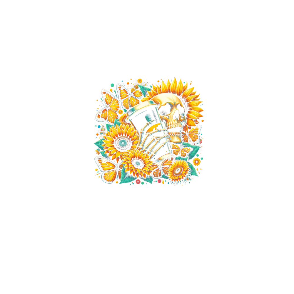 Sunflower Skull with Coffee Cup
