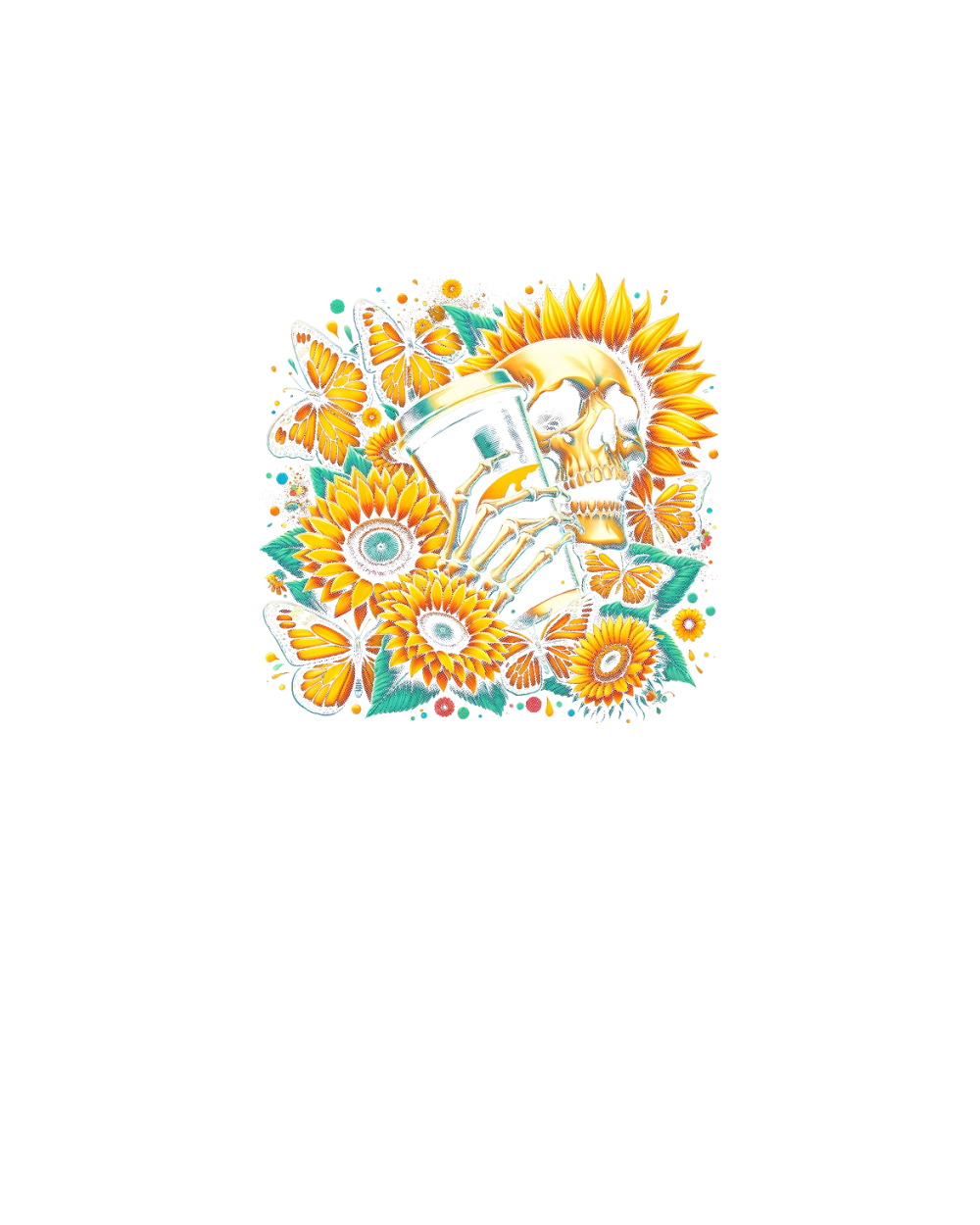 Sunflower Skull with Coffee Cup