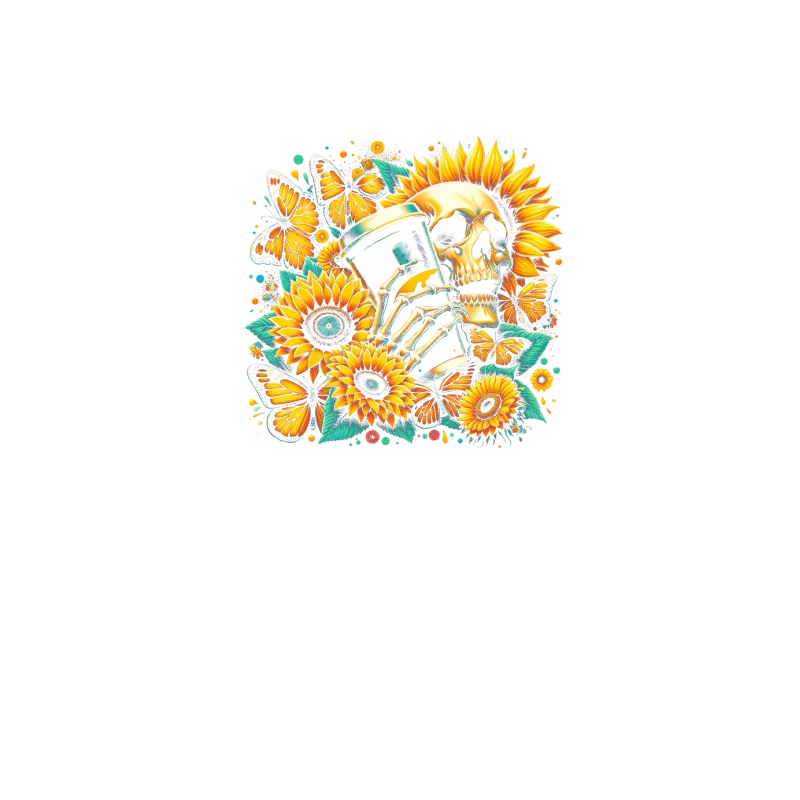 Sunflower Skull with Coffee Cup