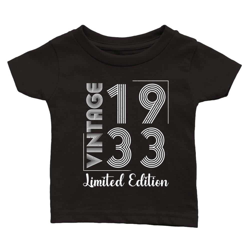 Shop Vintage 1933 Limited Edition Birthday Classic Baby Crewneck T-shirt custom made just for you. Available on many styles, sizes, and colors.