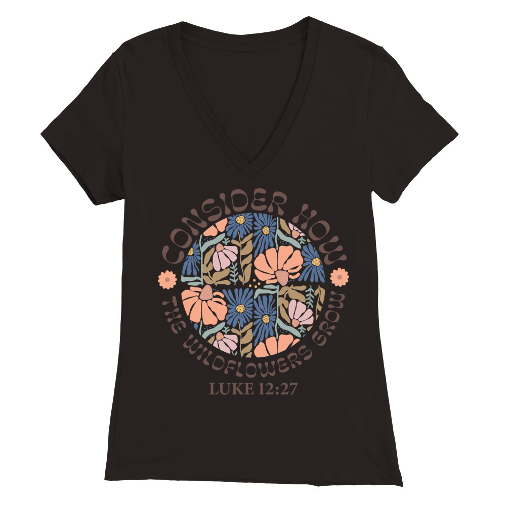 Shop Consider How The Wildflowers Grow Premium Womens V-Neck T-shirt custom made just for you. Available on many styles, sizes, and colors.