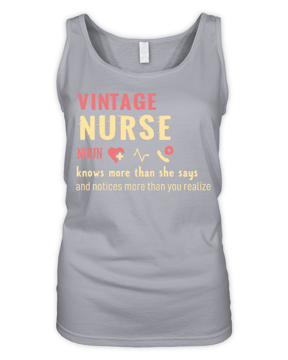 Shop vintage Nurse noun knows more than she says Organic Women's Tank Top custom made just for you. Available on many styles, sizes, and colors.