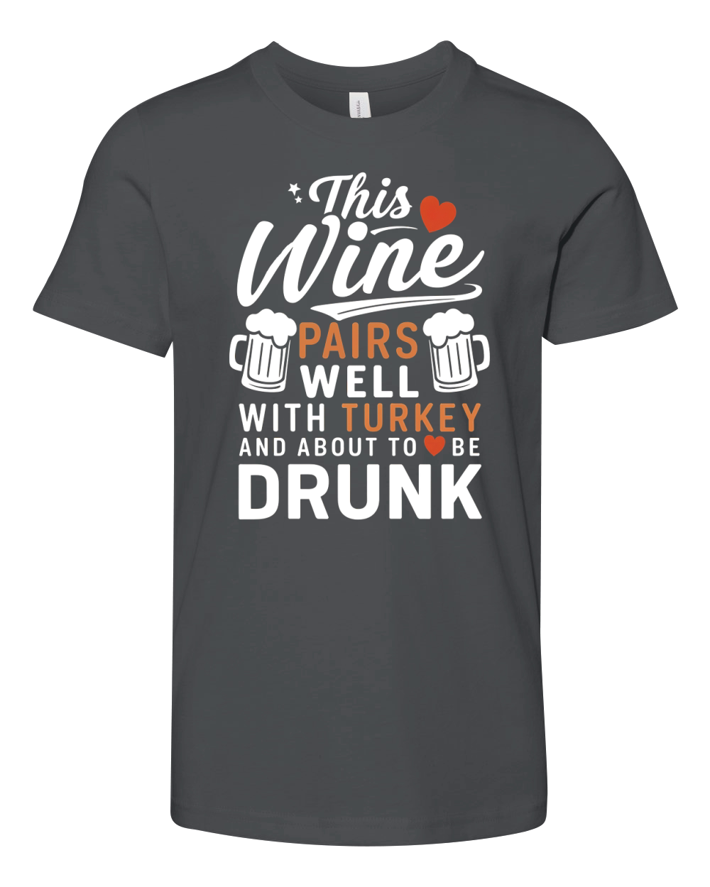 Shop This wine pairs with with turkey and about to be drunk Youth Unisex Jersey Tee custom made just for you. Available on many styles, sizes, and colors.