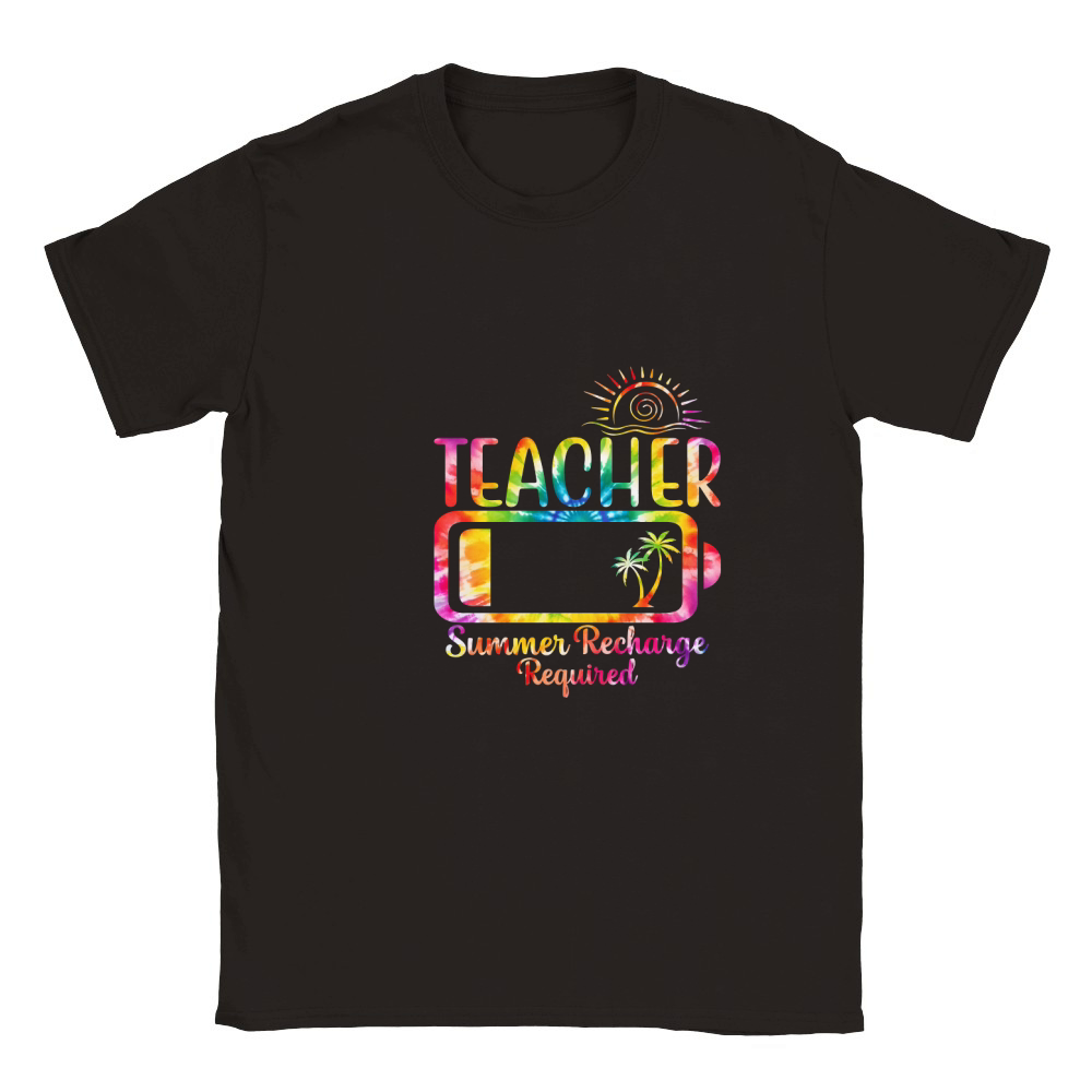 Shop Teacher SUMMER RECHARGE REQUIRED Classic Kids Crewneck T-shirt custom made just for you. Available on many styles, sizes, and colors.