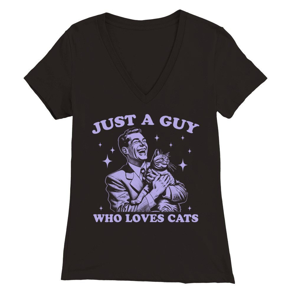 Shop Just A Guy Who Loves Cats D Violet Premium Womens V-Neck T-shirt custom made just for you. Available on many styles, sizes, and colors.