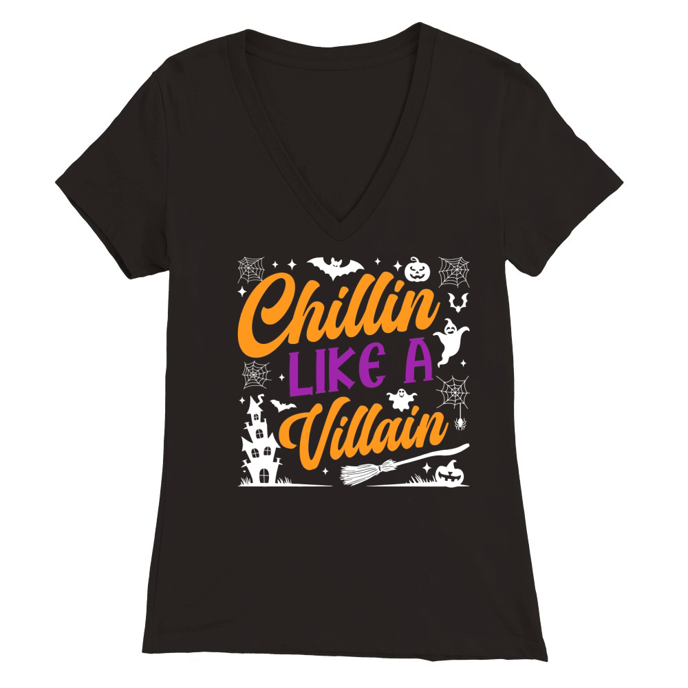 Shop chillin like a villain Premium Womens V-Neck T-shirt custom made just for you. Available on many styles, sizes, and colors.