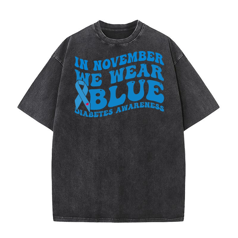 Shop In November We Wear Blue Diabetes Awareness Washed T-Shirt custom made just for you. Available on many styles, sizes, and colors.