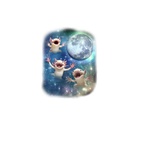 Three Axolotl Moon Weird Cursed