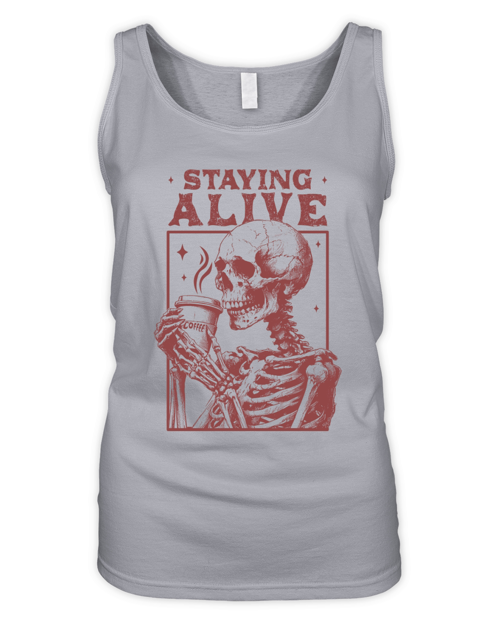 Shop Staying Alive Skeleton Coffee L D Red Organic Women's Tank Top custom made just for you. Available on many styles, sizes, and colors.