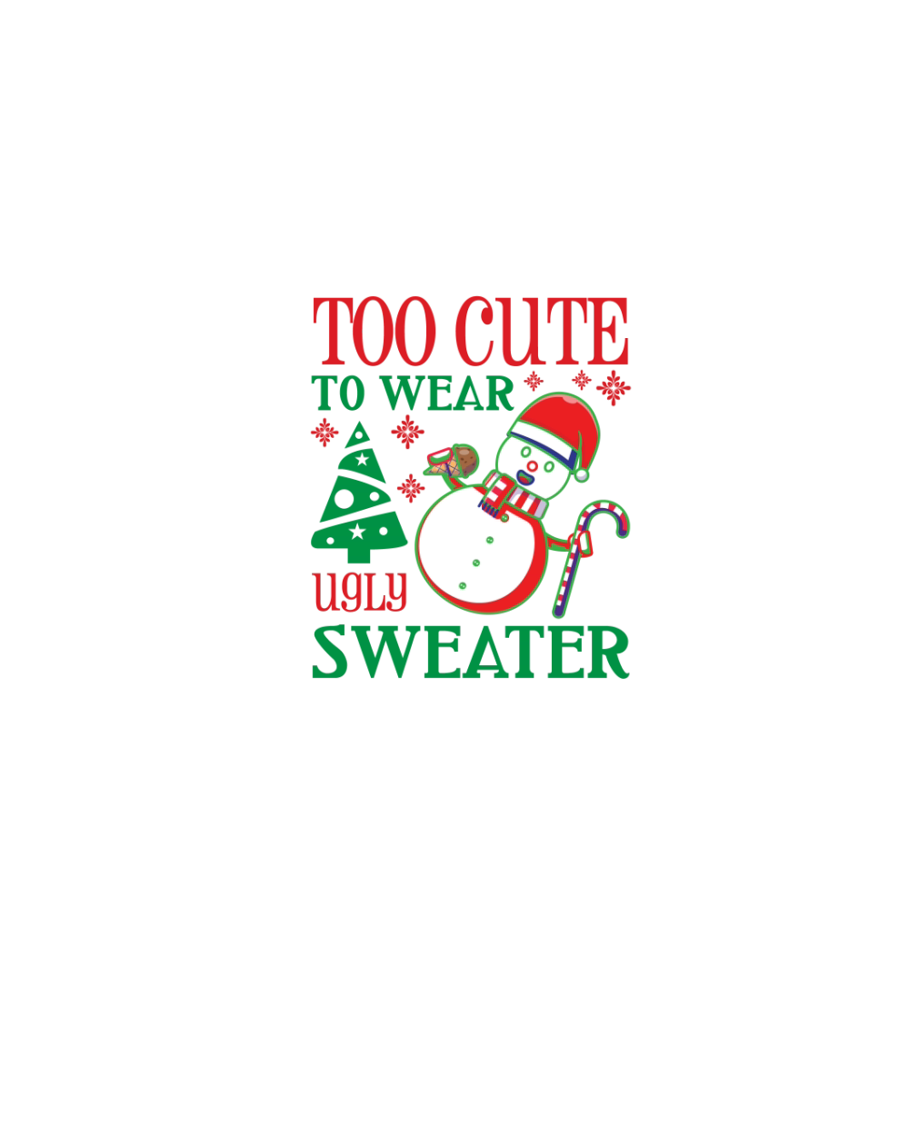 Too Cute to Wear Ugly Xmas Festive Fun Gift