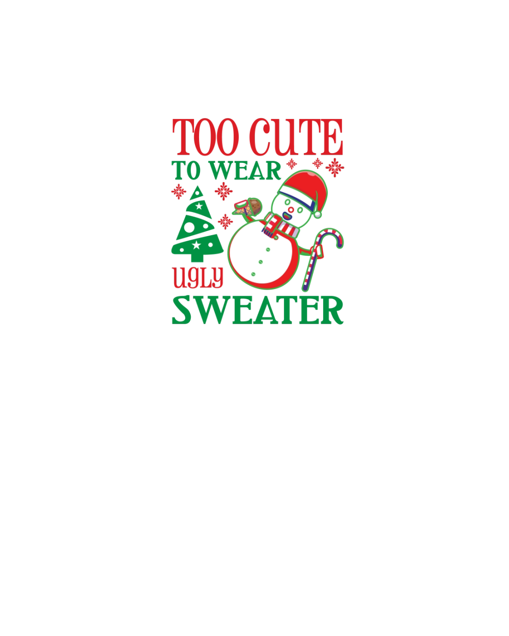 Too Cute to Wear Ugly Xmas Festive Fun Gift