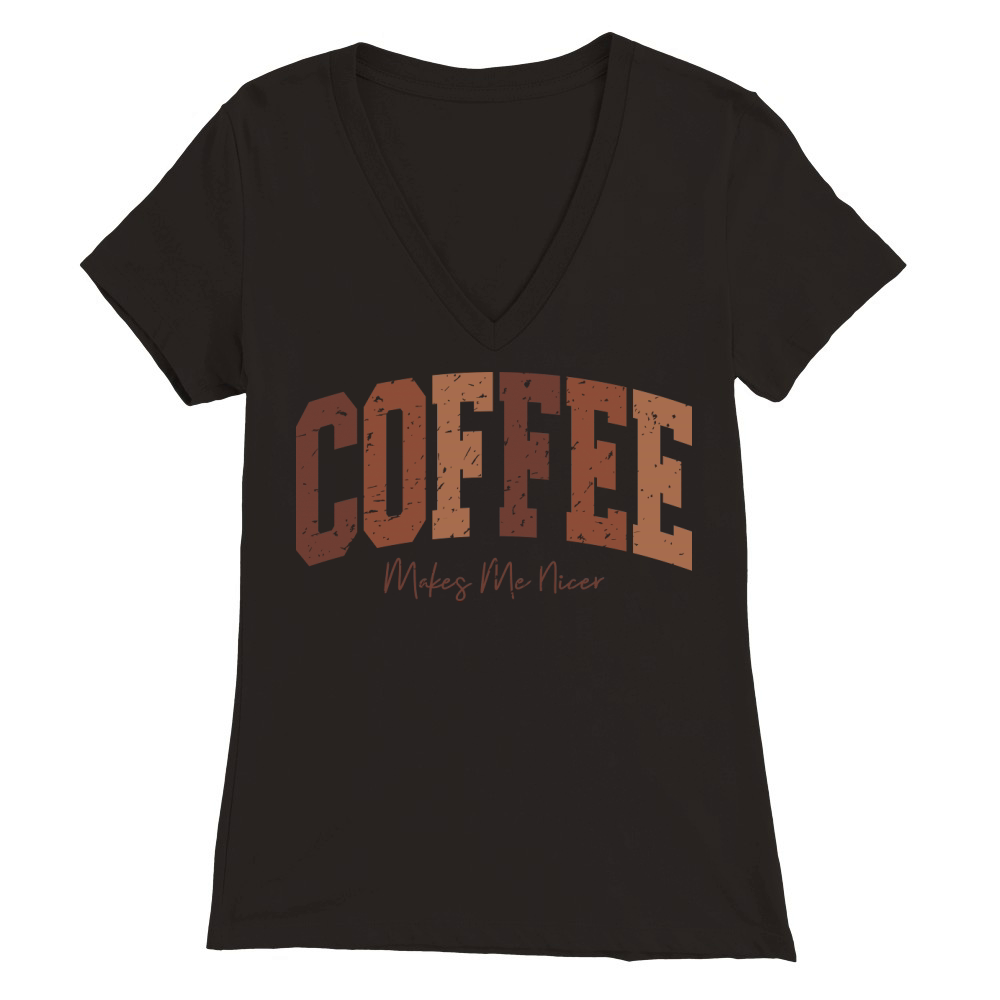 Shop CoffeeMakesMeNicer Retro Premium Womens V-Neck T-shirt custom made just for you. Available on many styles, sizes, and colors.