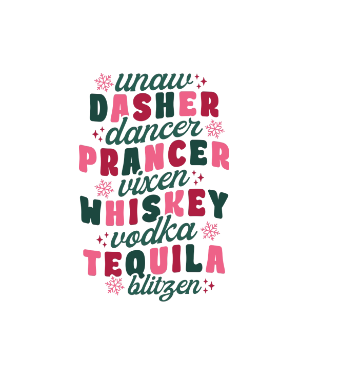 Unaw Dasher Dancer Prancer Vixen Whiskey Vodka Tequila Blitsen