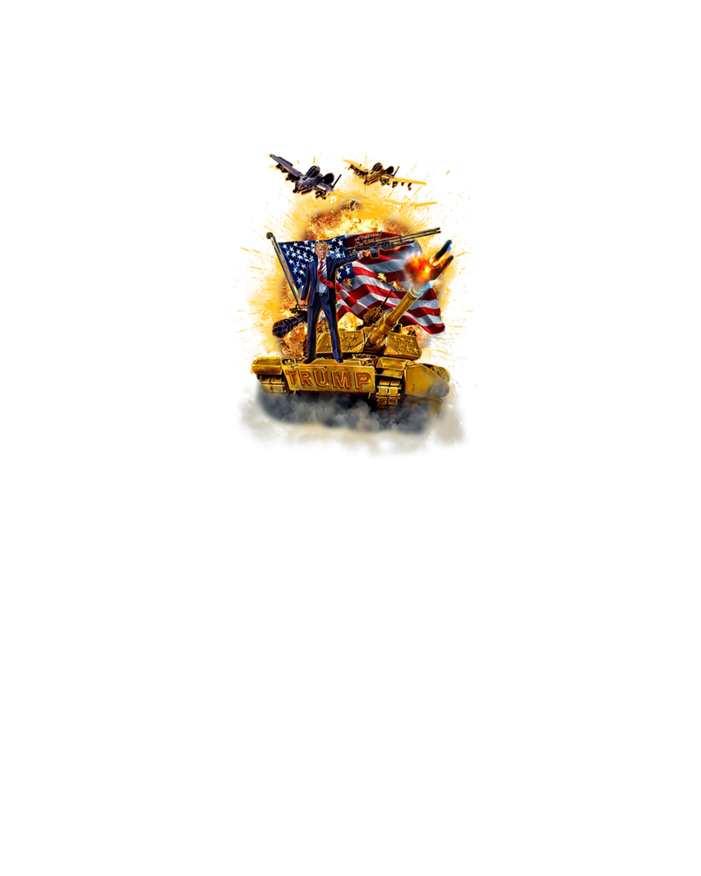 Shop United States President Donald Trump Epic Battle Tank Jet Plane American Flag shirt Youth Unisex Jersey Tee custom made just for you. Available on many styles, sizes, and colors.